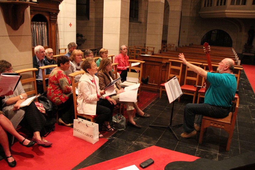 IMG_0048 Published 27 août 2014 at 1037 × 692 in Dimanche, c’est la Saint-Fiacre ! Chorale au travail et chef à la baguette !