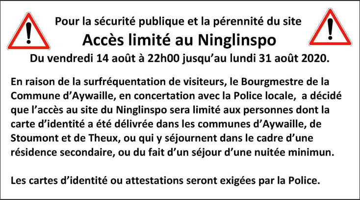 2020-08-20 – Restrictions Ninglinspo Published 20 août 2020 at 734 × 409 in Accès restreint à la promenade du Ninglinspo !