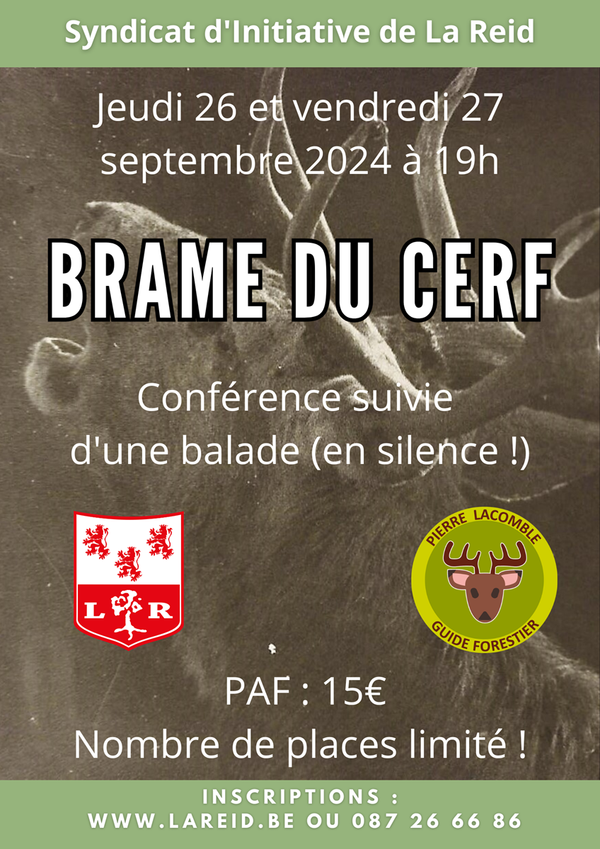 Un moment consacré à cette période emblématique de nos régions, riches en cervidés. Pierre Lacomble, guide forestier passionné, viendra nous présenter (vidéo à l’appui) le brame du cerf, avant de nous emmener dans les bois où, en silence, nous chercherons à écouter ce cri si particulier.