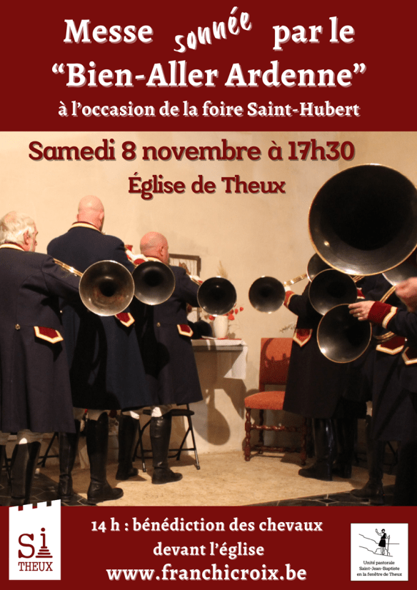 Pour les amateurs de sonneries de trompes de chasse, rendez-vous à Theux ce samedi 8 novembre, à l’occasion de la Foire Saint-Hubert : les sonneurs du Bien-Aller Ardenne seront présents pour animer musicalement les deux moments suivants :