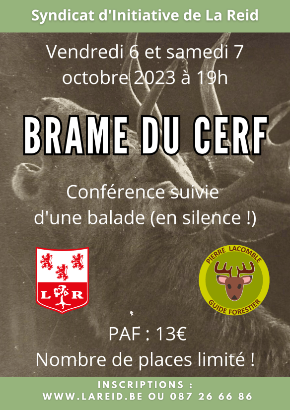 Un moment consacré à cette période emblématique de nos régions, riches en cervidés. Pierre Lacomble, guide forestier passionné, viendra nous présenter (vidéo à l’appui) le brame du cerf, avant de nous emmener dans les bois où, en silence, nous chercherons à écouter ce cri si particulier.